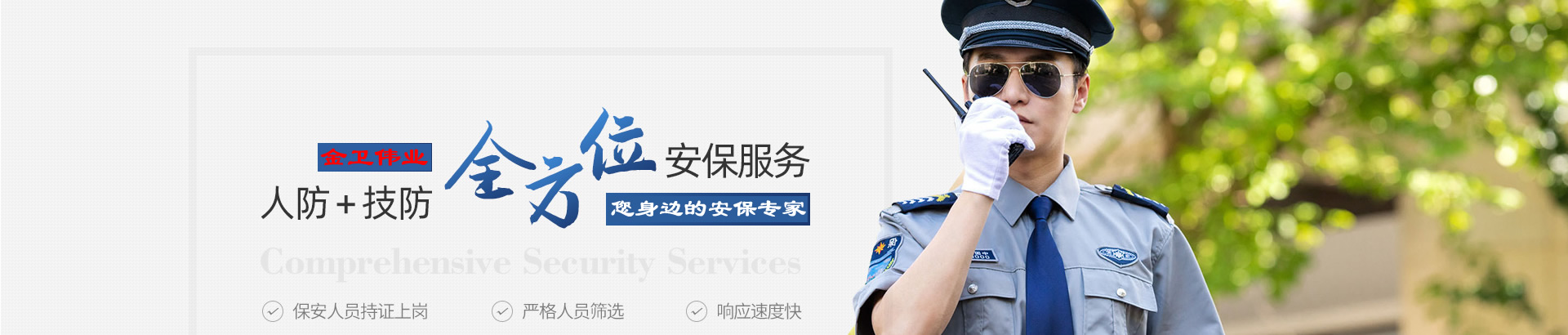高素質(zhì)的專業(yè)保安隊伍 保一方平安 創(chuàng)優(yōu)質(zhì)服務